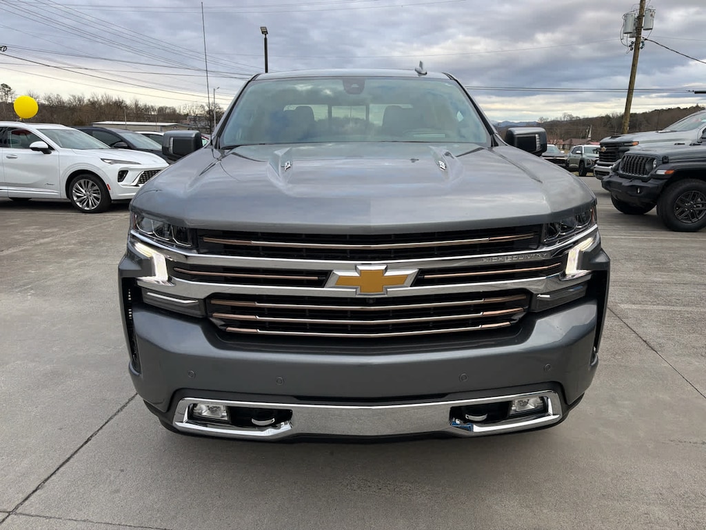 includes (PDJ) Safety Package II, (CF5) power sunroof, (RVA) 22 polished aluminum wheels, (XCE) 275/50R22SL all-season, blackwall tires and (RIA) floor liner, LPO, (420 hp [313 kW] @ 5600 rpm, 460 lb-ft of torque [624 Nm] @ 4100 rpm); featuring Dynamic Fuel Management that enables the engine to operate in 17 different patterns between 2 and 8 cylinders, depending on demand, to optimize power delivery and efficiency, includes (UVS) HD Surround Vision with Two Trailer View Camera Provisions, (DRZ) Rear Camera Mirror, (UV6) 15 Diagonal Head-Up Display and (UVN) Bed View Camera, includes (UEU) Forward Collision Alert, (UHX) Lane Keep Assist with Lane Departure Warning, (UHY) Automatic Emergency Braking, (UKJ) Front Pedestrian Braking, (TQ5) IntelliBeam headlamps, (UE4) Following Distance Indicator, (KSG) Adaptive Cruise Control and (HS1) Safety Alert Seat, with rearward articulating (providing bed access), SUSPENSION, ADAPTIVE RIDE CONTROL, with six functional load/access features, NOTE: Auto release can be disabled if ball hitch is installed. See Owners manual for details, 8 diagonal HD color touchscreen, AM/FM stereo, Bluetooth® audio streaming for 2 active devices, wireless Apple CarPlay® and Android Auto® capable, enhanced voice recognition, additional memory for in-vehicle apps, cloud connected personalization for select infotainment and vehicle settings. Subscription required for enhanced and connected services after trial period. (STD), with overdrive and tow/haul mode. Includes Cruise Grade Braking and Powertrain Grade Braking (STD) Vehicles built with a V8 engine and (MQB) 10-speed automatic transmission will have (NSS) Not Equipped with Automatic Stop/Start, which removes Automatic Stop/Start and its content.). Chevrolet High Country with Satin Steel Metallic exterior and Jet Black interior features a 8 Cylinder Engine with 420 HP at 5600 RPM*.
