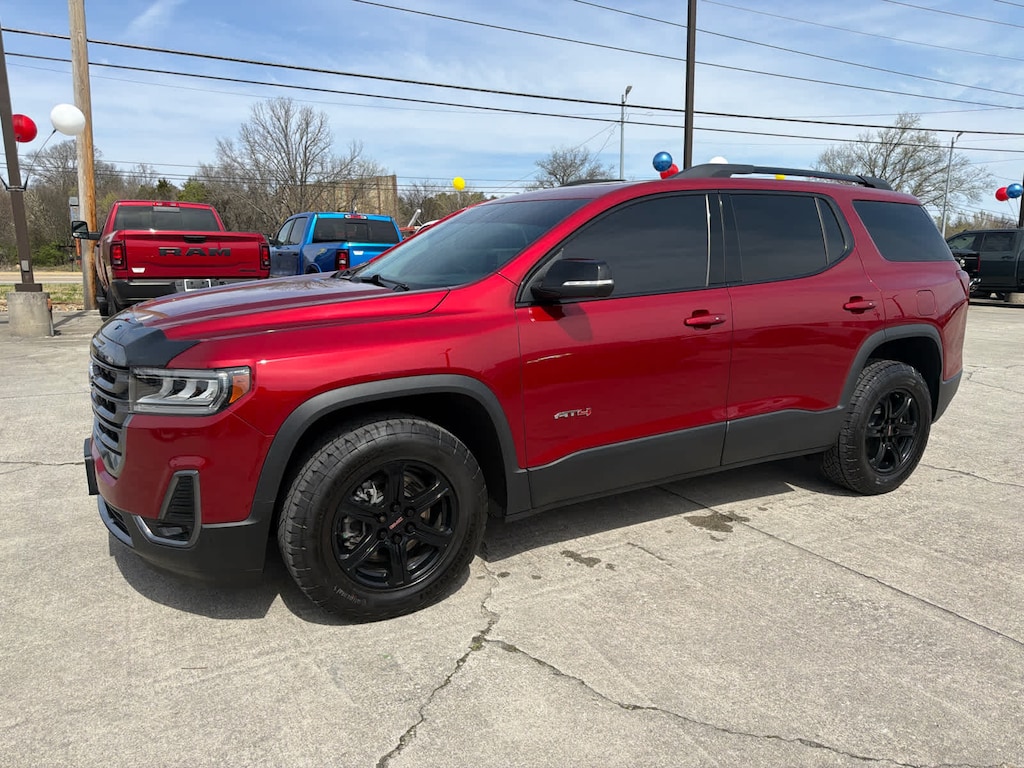 with tilt-sliding front and fixed rear with sunscreen, includes (UV2) HD Surround Vision and (UV6) Head Up Display, includes factory-installed hitch, 4000 lbs. towing, 7-pin wiring harness, Class III hitch, (V08) heavy-duty cooling system, (PZ8) Hitch Guidance with Hitch View and (CTT) Hitch Guidance (Also includes (KW7) 170-amp alternator with (LGX) 3.6L V6 engine.), LPO, BLACK LUG NUT AND WHEEL LOCK KIT, THATCHAM, INCLUDES 20 LUG NUTS, 4 LOCKS AND 1 KEY, includes multi-touch display, AM/FM/SiriusXM stereo, Bluetooth® streaming audio for music and most phones, Android Auto® and Apple CarPlay® capability for compatible phones, advanced voice recognition, in-vehicle apps, personalized profiles for infotainment and vehicle settings (STD), with Variable Valve Timing (VVT) (310 hp [231.1 kW] @ 6600 rpm, 271 lb-ft of torque [365.9 N-m]) @ 5000 rpm (STD), with 3.6L V6 engine (STD), includes (AAB) Memory Package for power driver seat and outside mirrors, (A7K) 8-way power front passenger seat adjuster, (DYX) outside heated power-adjustable power-folding body-color mirrors with driver-side auto-dimming with integrated turn signal indicators, (AT9) power passenger lumbar control, (KU9) heated and ventilated driver and front passenger seats, (KA6) heated rear outboard seats and (N38) power tilt and telescopic steering column. GMC AT4 with Volcanic Red Tintcoat exterior and Jet Black interior features a V6 Cylinder Engine with 310 HP at 6600 RPM*.
