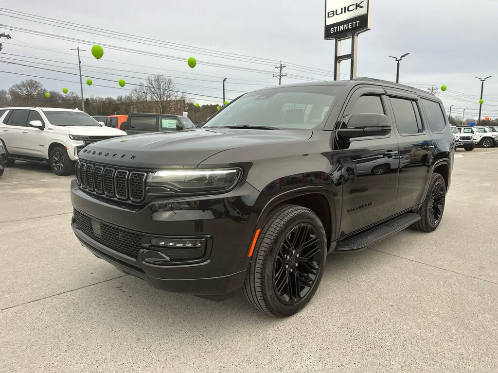 PREMIUM GROUP I Reversible Carpet/Vinyl Cargo Mat, Tires: 285/45R22XL BSW All Season, Cargo Cover, 3 Panel Sunroof, Adjustable Roof Rail Crossbars, Wheels: 22 x 9.0 Painted Gloss Black, TRANSMISSION: 8-SPEED AUTOMATIC (8HP75) (STD), ENGINE: 3.0L I6 HURRICANE SO TWIN TURBO ESS (STD). Jeep Series II Carbide with Diamond Black Crystal Pearlcoat exterior and Global Black interior features a Straight 6 Cylinder Engine with 420 HP at 5200 RPM*.